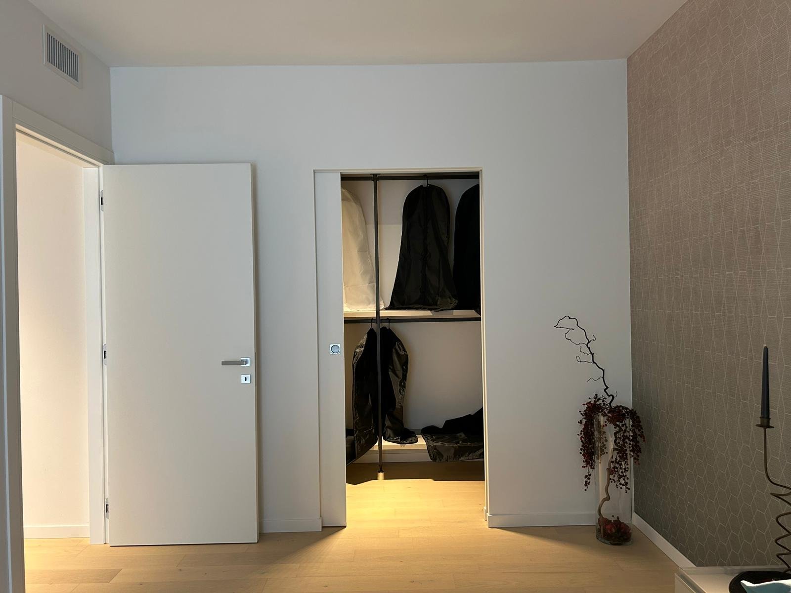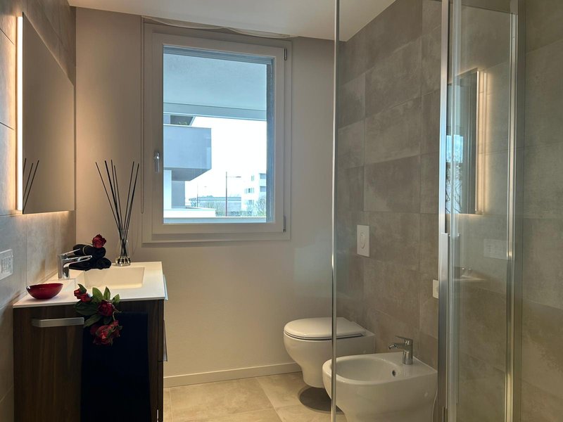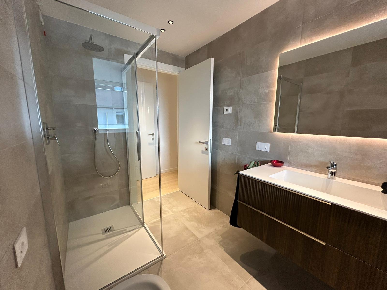 Sarà piacevole entrare nella zona notte camminando a piedi scalzi sul pavimento in legno e sapere di avere tutto lo spazio necessario per un grande armadio, un letto a una o due piazze e una scrivania. Le porte finestre hanno l’avvolgibile oscurante motorizzato, che facilita la routine della chiusura e apertura.