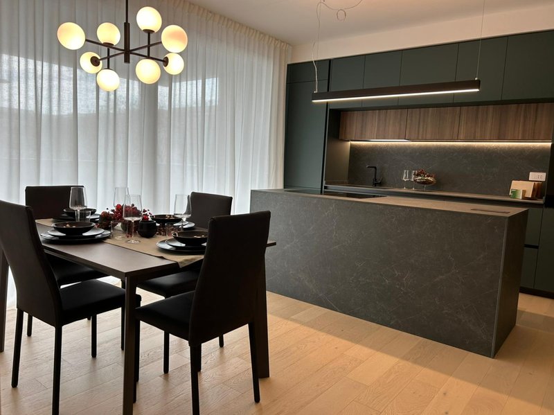 Varcata la porta d’ingresso, verrai accolto da una luminosa zona giorno: un 'ampia vetrata che da sul terrazzo, illumina la cucina con isola e una tavola da pranzo; accanto, un grande divano che guarda ad un altrettanto importante zona TV. Sarà piacevole trascorrere qui i momenti liberi con la propria famiglia o organizzare serate con i propri amici.